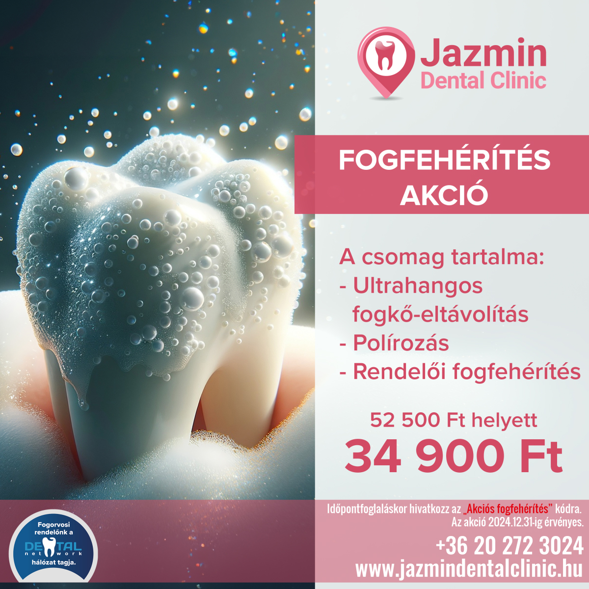 Időpont foglalásakor hivatkozzon az "AKCIÓS fogfehérítés" kódra, így érvényesíthető a kedvezmény.